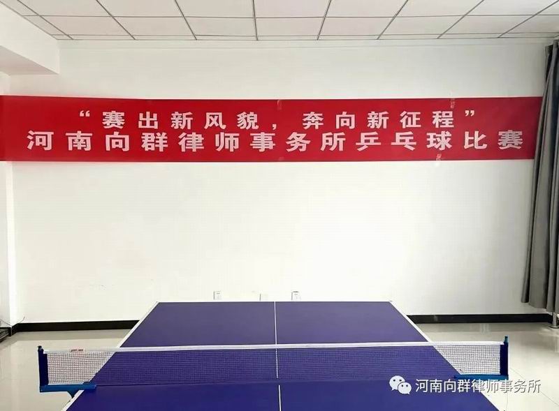 为庆祝党的二十大胜利召开,更好地丰富和活跃我所律师文体生活,凝聚律所团结奋进力量,2022年11月17日下午,我所在文体活动室成功举办了“赛出新风貌,奔向新征程”河南向群律师事务所乒兵球比赛