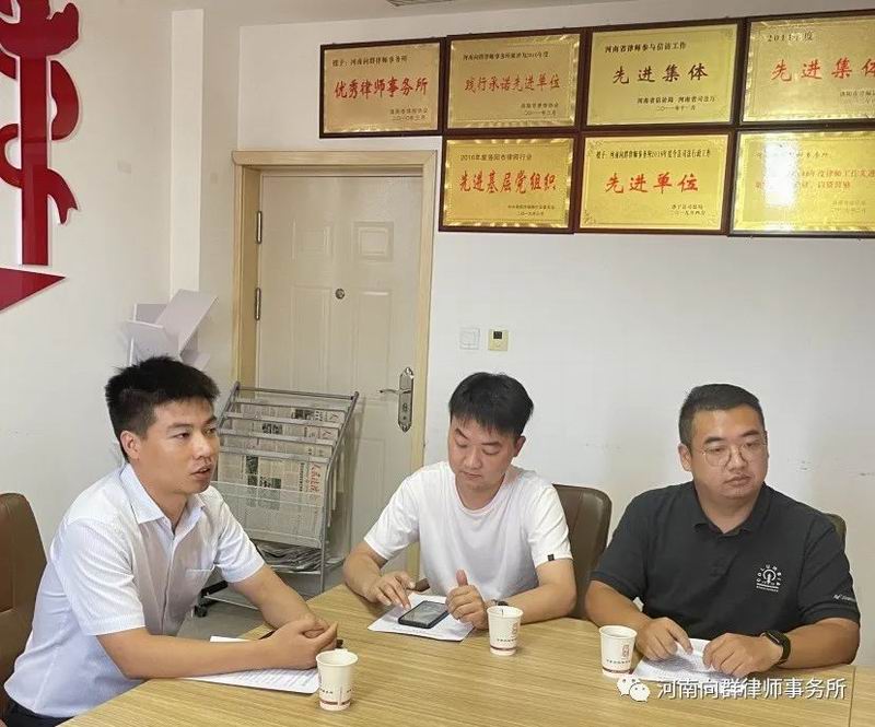2023年8月28日,洛宁县青年律师结对帮扶问题调研交流会在河南向群律师事务所会议室召开,洛宁县域河南向群律师事务所、河南齐合律师事务所、河南卓青律师事务所近二十名青年律师参与了本次会议,本次交流会由河南向群律师事务所青年党员律师郭陶利主持。